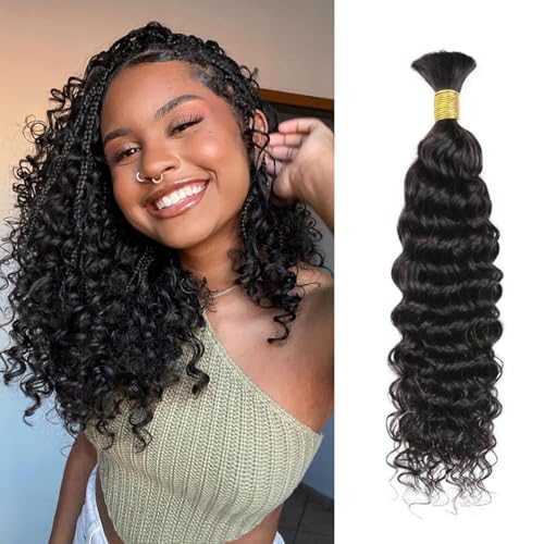 Water Wave Bulk Human Hair for Braiding 50g 14 inch 100% Unprocessed Brazilian Virgin Human Hair Boho Braids Hair Human Braiding Hair No Weft Natural Color
