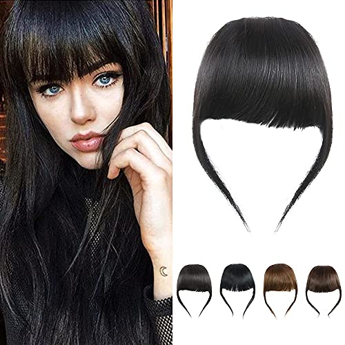 Clip In Tjockt Hår Bangs Human Hair Fringe Real Human Hair Bang Extension Obearbetad Frans, Naturlig Svart Färg