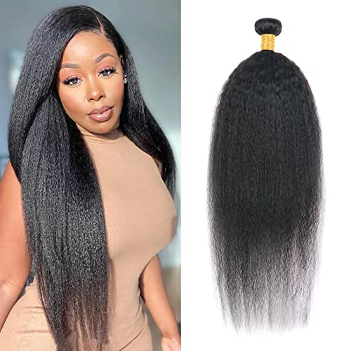 Kinky Straight Bundles Human Hair Yaki Straight Human Hair 3 Bundles 100% Unprocessed Brazilian Virgin Remy Hair Yaki Straight Bundles For Black Women Natural Black Color 16 18 20 Inch 300g