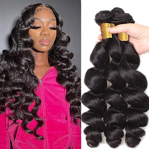Huarisi Loose Wave 18 20 22 Human Hair Bundles, Brazilian Loose Wave Hair 3 Bundles, 8A Grade 100% Unprocessed Brazilian Virgin Hair Extensions for Black Women