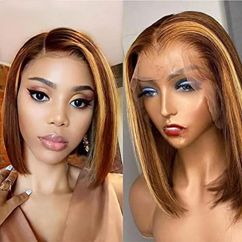 Blonde Bob Wig Human Hair,T Part Lace Front Wigs Human Hair with Baby Hair Natural Hairline Human Hair Brazilian Ombre Lace Closure Wig Blonde Bob Wig Straight Hair 150% Density A,10inch