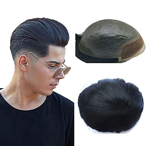 N.L.W Män's PU Front Peruk med Toupee Lace European Human Hair Pieces for Men Hair Prosthesis 8×10 Inches Thin Skin 0.06cm Thick Men's Wig (#1Black)