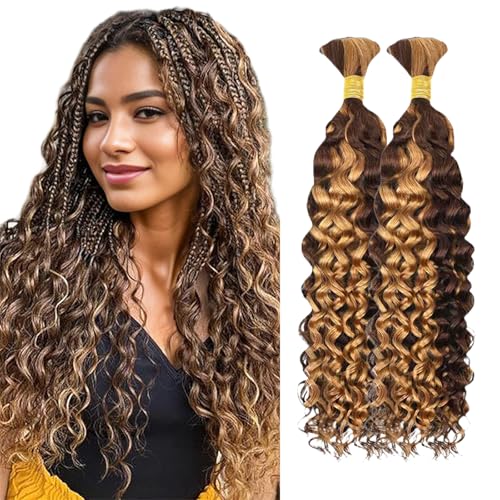 Water Wave Bulk Human Hair for Braiding 2 buntar 100 g 22 22 tum, 100 % obearbetat brasiliansk virgin human hair hair human braiding hair No Weft P4/27 highlight ombre color