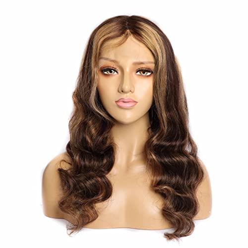 Blonde Brown Colored 13x6 HD Transparent Lace Front Human Hair Wigs Brazilian Body Wave Lace Frontal Wig Remy Hair Pre Plucked With Baby Hair Bleached Knots 150% Density (Size : 22 Inch)