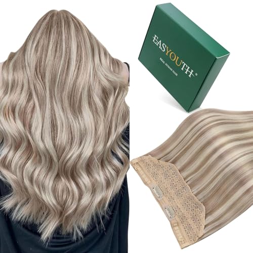 YoungSee Clip inn Human Hair Extensions Ash Blond Short Human Hair Extensions Clip Ash Blond Highlights Blond Remy Hair Extensions Clip in Human Hair Extensions för kvinnor 30cm 80g 7st #18/613