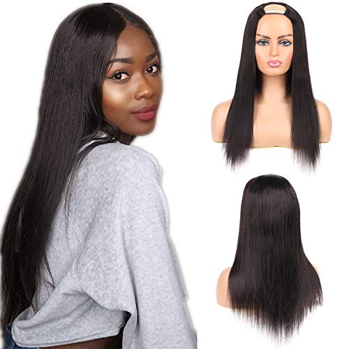 130% Density U Part Wigs - 20 Inch Straight Human Hair Wigs Natural Color - 10A Virgin Brazilian Remy Human Hair Extension for Black Women None Lace Half Machine Made Wigs