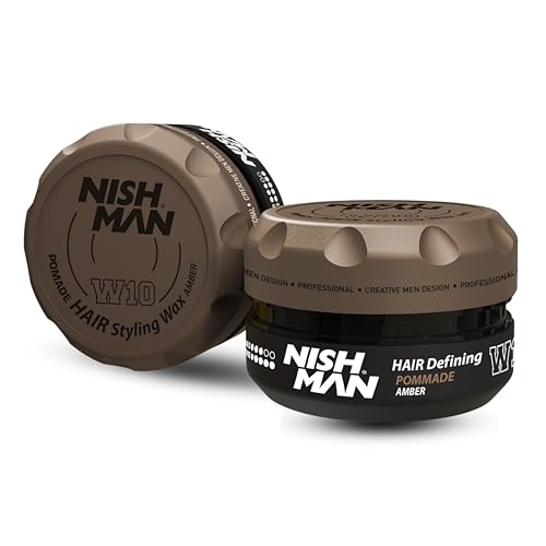 NISHMAN Hair Styling Pomade Wax W10 – Amber 100g – Flexibel, Måttlig Hållbarhet och Medium till Hög Glans – Perfekt för Fast Styling, Vård och Långvarig Look