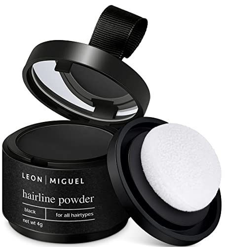 LEON MIGUEL Applicerbara pulver – Hairline Powder som vattentätt hår concealer för att dölja för kvinnor och män, osynligt hår smink för hårtätning – 4 g | svart