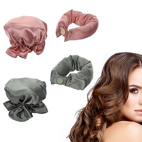 4st Heatless Satin Hair Curler, Soft No Heat Hair Curlers Hair Rollers Heatless Lockar med Hårkepsar Heatless Curling Pannband Satin för Långt Hår (Rosa, Grön)