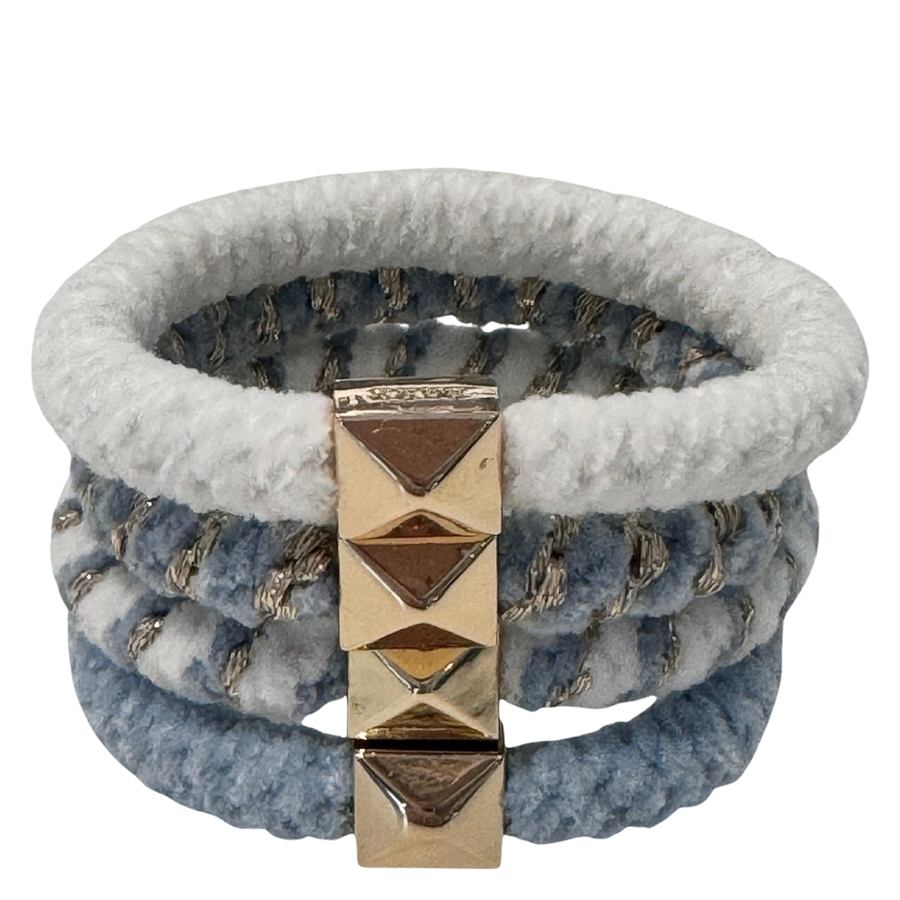 DARK Fluffy Fat Hair Tie With Gold Light Blue Mix 4 st