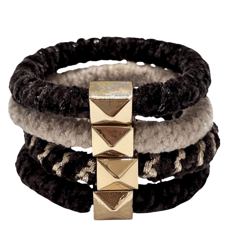 Dark Fat Hair Ties Combo Sand Mix with Gold 4 st
