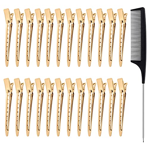 MELLIEX 24 stycken avdelklämmor frisör, hårklämmor Entebill hårklämmor kombiklämma stål hårklämma alligator curl clips gyllene