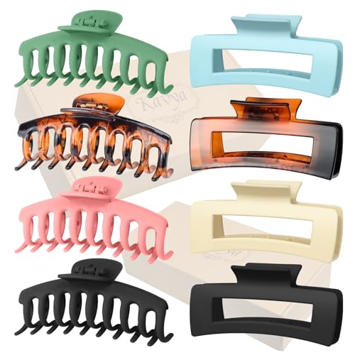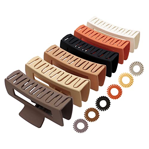 Hårklämma stort tjockt hår, kavya halkfritt hårspänne starkt grepp matt hårklämmor rektangulär plast jumbo hårklämmor för kvinnor och flickor (6 färger)