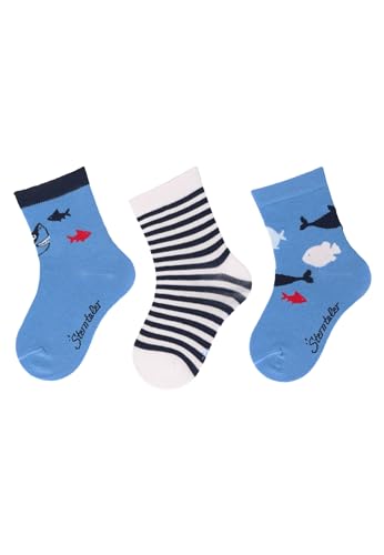 Sterntaler Strumpor 3-pack haj, randig och fisk – babystrumpor för pojkar – babystrumpor med motiv – strumpor för spädbarn i en uppsättning, Sammetsblå, 18