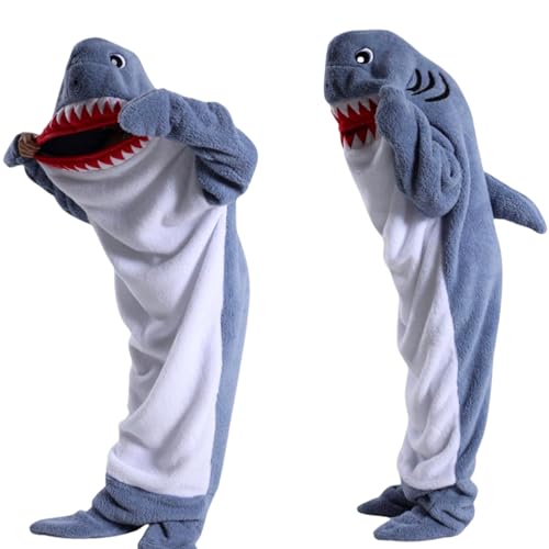 IVEOPPE hajfilt – hajfilt för vuxna barn, mysig flanell med huva, bärbar huvjacka, sovsäck, onesie, hajdräkt, Gråblå, XL