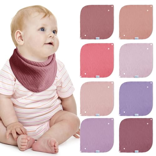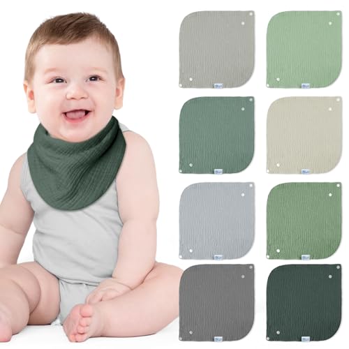 Lulu måne haklapp baby absorberande triangelduk, muslinhalsduk baby med justerbar tryckknapp, mjuka dregelhaklappar för pojkar och flickor, unisex, 8 stycken (jord)