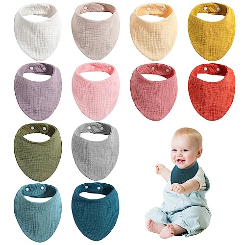 12 stycken haklappar baby – triangulär halsduk baby, absorberande muslinhalsduk baby, triangulär halsduk, haklapp med justerbar tryckknapp, hängande haklapp för nyfödda, baby, småbarn, pojke, flicka