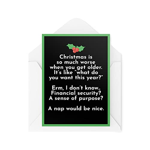 Roliga julkort | Julen är värre när vi blir äldre kort | För henne honom nyhet skämt haklapp tupplur vuxen festlig söt sarkasm | CBH715
