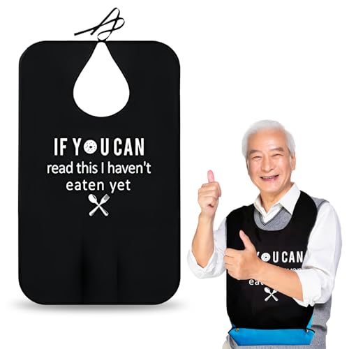Naapesi Roliga vuxna haklappar för äldre, återanvändbara vattentäta haklappar för vuxna, klädskydd för vuxna äldre, vuxen haklapp med smulfångare, tvättbar vuxen haklapp för män kvinnor äldre, svart,