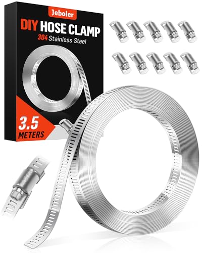 3,5 meter slangklämmor, jeboler 304 rostfritt stål slangklämma hålband metall med 10 stycken fastsättning, gör-det-själv slangbindeset, slangklämma för pool, tvättmaskin, kylare och trädgård
