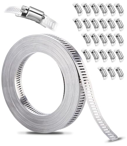 Xespis Slangklämmor 304 rostfritt stål, 10 m hålband metall 25 stycken fastsättning, gör-det-själv slangklämmor set, justerbar slangklämma, för vattenrör, tank, gasrör, kylare, bilrör