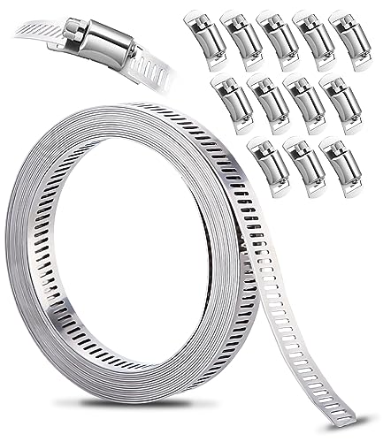 Xespis Slangklämmor 304 rostfritt stål, 3,5 m hålband metall 12 stycken fastsättning, gör-det-själv slangklämmor set, justerbar slangklämma, för vattenrör, tank, gasrör, kylare, bilrör
