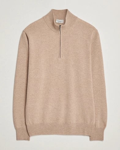 Oscar Jacobson Paul Wool/Cashmere Half-Zip Beige