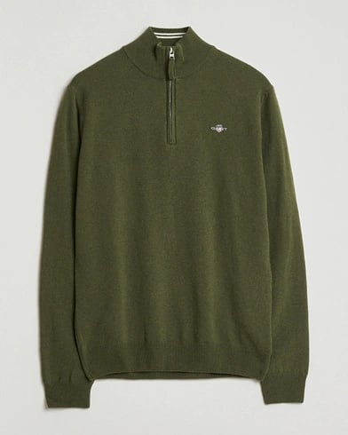 GANT Superfine Lambswool Half Zip Khaki Green Melange