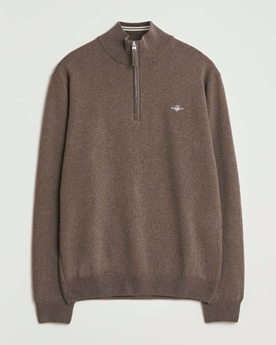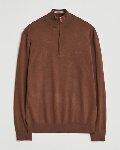 GANT Extrafine Merino Wool Half Zip Mahogany Brown