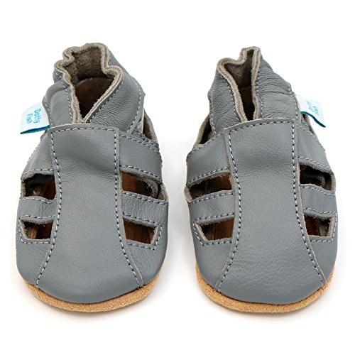 Dotty Fish Unisex mjuka lädersandaler för småbarn och småbarn - 7 mönster, halkfria, barfota sula, lätta, andningsbara. Sommarskor för pojkar och flickor 17–27 EU, Grå Sandaler, 17 EU