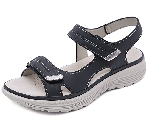 SMajong Dam ortopediska sandaler kvinnor bekväma sandaler med mjuk fotbädd sommar lätta halkfria sandaler, storlek 35–44 EU, B svart, 38 EU