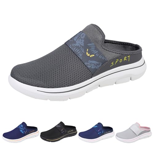 Ventilerande tofflor herr, tofflor herr stängda nättyg tofflor slip-on skor med dämpning glid sportiga fritidsskor, lätta promenadskor, halkfria tofflor, Mörkgrå, 43 EU