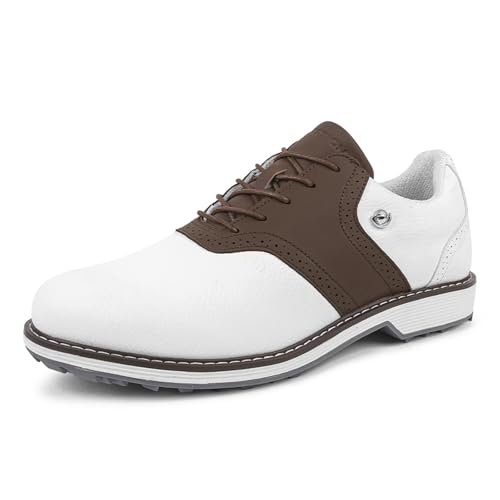 ZHENSI Vattentäta golfskor Herr Spikeless Golf Träningsskor Läder Sneakers Casual Halkfria Walking Business Skor,Brown,43 EU