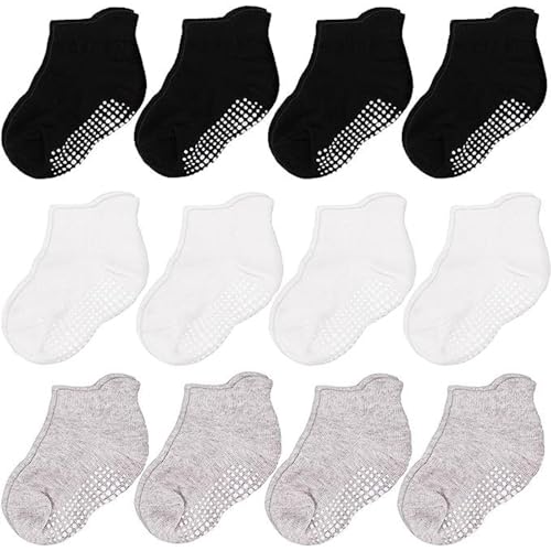 CozyWay Baby halkfria strumpor småbarn strumpor med grepp ankel för spädbarn barn små flickor pojkar, Svart vit grå 12 par, 1-3 år
