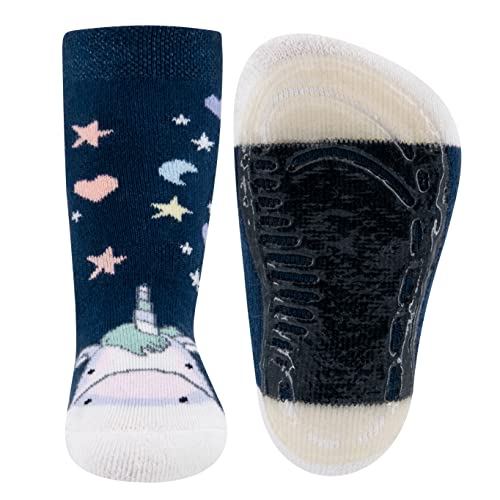 EWERS Stopperstrumpor enhörning, strumpor med halkfri sula för flickor, halkfria strumpor med gummisula, tillverkade i Tyskland, 1 par halkfria barnstrumpor, bläck, 18-19