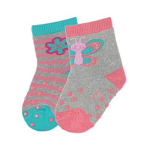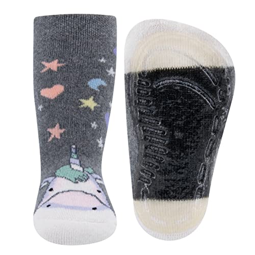 EWERS Stopperstrumpor enhörning, strumpor med halkfri sula för flickor, halkfria strumpor med gummisula, tillverkade i Tyskland, 1 par halkfria barnstrumpor, grå mel, 19-20