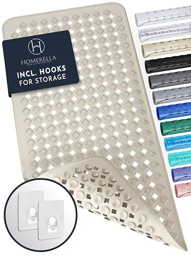 homerella Badkarsmatta halkfri, 88 x 39 cm, inklusive krok, halkfri badmatta BPA-fri, duschmatta, halkfri, badkar, halkmatta badkar, mögelresistent och maskintvättbar