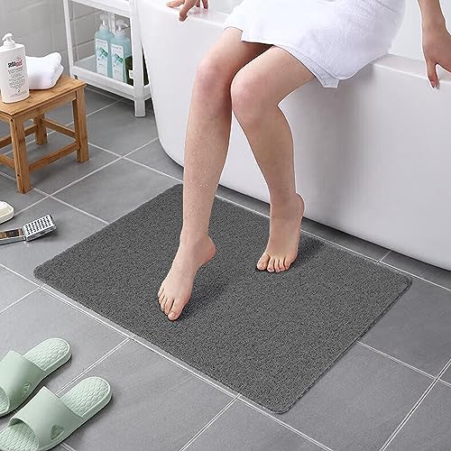 HITSLAM Duschmatta, halkskydd, 60 x 40 cm, halkfri badkarsmatta med dränering, mjuk PVC, snabbtorkande dusch/badmatta för badkar och badrum, grå