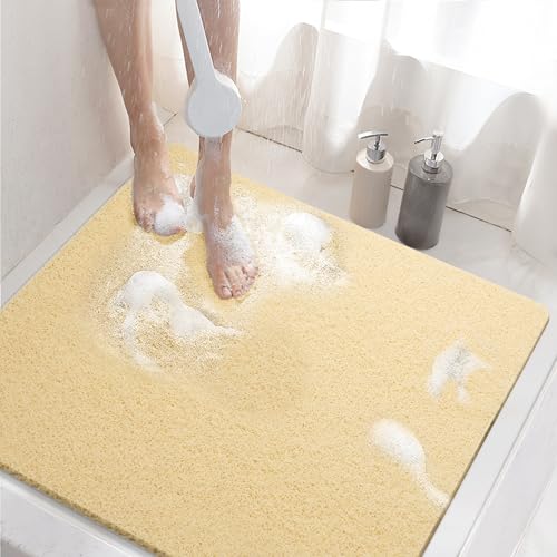 HITSLAM Duschmatta, halkskydd, 60 x 60 cm, halkfri badkarsmatta med dränering, mjuk PVC, snabbtorkande dusch/badmatta för badkar och badrum, beige
