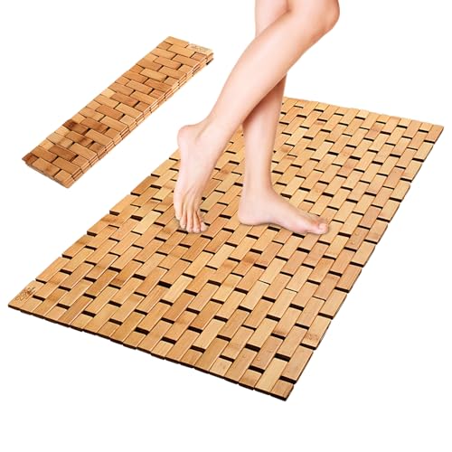 Focenat 40 x 60 cm bambu badrumsmatta, fuktbeständig halkfri halkskydd golvmatta, trä duschmatta för badkar, dusch, dörr