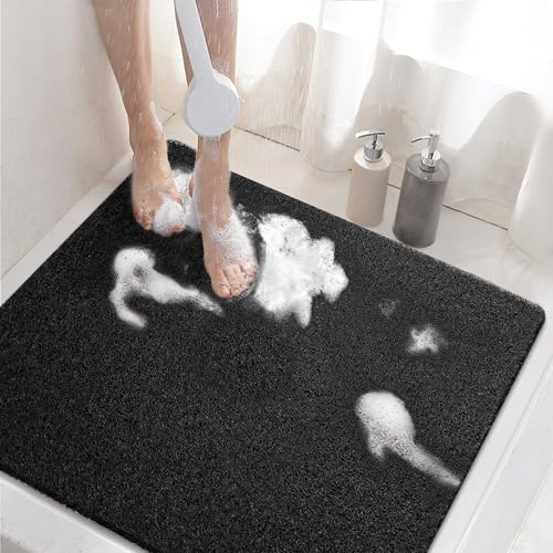 HITSLAM Duschmatta, halkskydd, 60 x 60 cm, halkfri badkarsmatta med dränering, mjuk PVC, snabbtorkande dusch/badmatta för badkar och badrum, svart