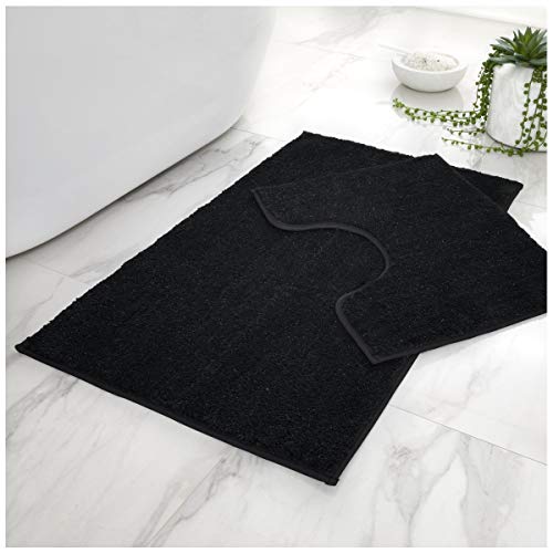 Supermjuk 2 delar glänsande glittrande badmatta halkskydd piedestalset, extra komfort vattenabsorberande badrum toalettmatta, normal (50x80, 50 x 40 cm), svart