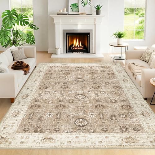 Capslpad tvättbara mattor vardagsrum 200 x 300 cm slitna vintage mattor halkskydd traditionell orientalisk sovrumsmatta låg lugg tunn golvmatta matta för matsal kök kontorsdekor, beige brun