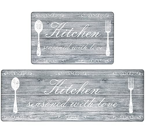 Pauwer anti-trötthet köksmatta uppsättning av 2 vadderade köksgolvmattor vattentäta köksmattor halkskydd kök löpare matta komfort mjuk stående matta mattor