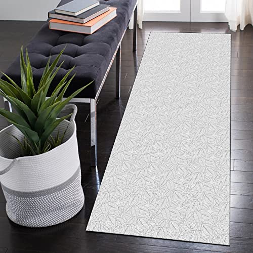 Löpare Matta för Hallar Halkskydd Grau 60x150cm Laubmuster Lång Matta Hallar Halkskydd Kort Lugg Mattor Tvättbar for Korridor Kök, Anpassade Storlekar Tillgängliga, Bredd 40-120cm
