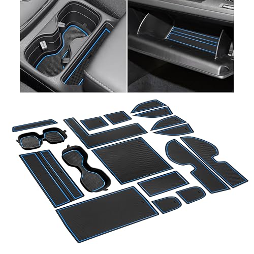 SENSHINE för Honda CR-V CRV-tillbehör 2023 2024 kopphållare insats mittkonsolfoder trim dörr paket mattor halkskydd anti-damm premium anpassad interiör 18 st set (blå kant)