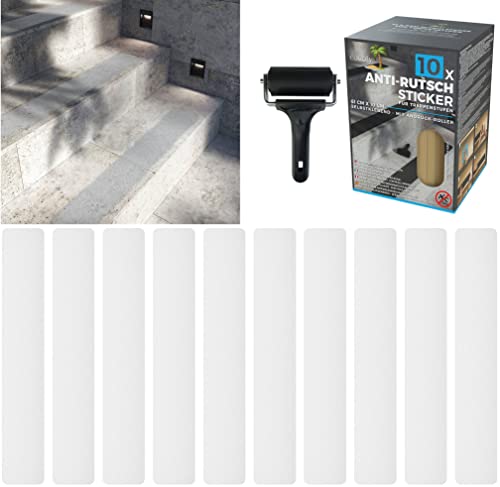 cocofy Halkskyddstejp För Trappor Inomhus och Utomhus | 10x Halkskydd (61x10 cm) Halvtransparent| Starkt Fäste | Halkskydd För Trappor | Med Monteringsroller