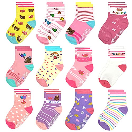 HYCLES Halksockor för barn 0 - 7 år, 12 par halkfria ABS-strumpor för pojkar, flickor, bebisar, storlek 23 - 26, 27 - 30, för åldrarna 0 - 6 - 12 - 18 månader, 3-5 år