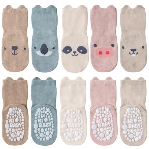 SockWaddles Stoppstrumpor Barn Baby, 5 Par ABS Andningsbara Anti-Halkstrumpor Barn, Kravlstrumpor Baby Bomull, Pojkar och Flickor Crewstrumpor med Djur
