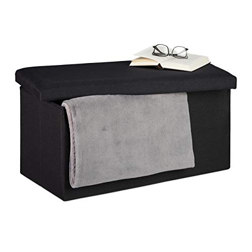Relaxdays Bänk med förvaringsutrymme, linneutseende, vadderad, hall, sovrum, byråbänk, HBT: 38 x 76,5 x 38,5 cm, svart
